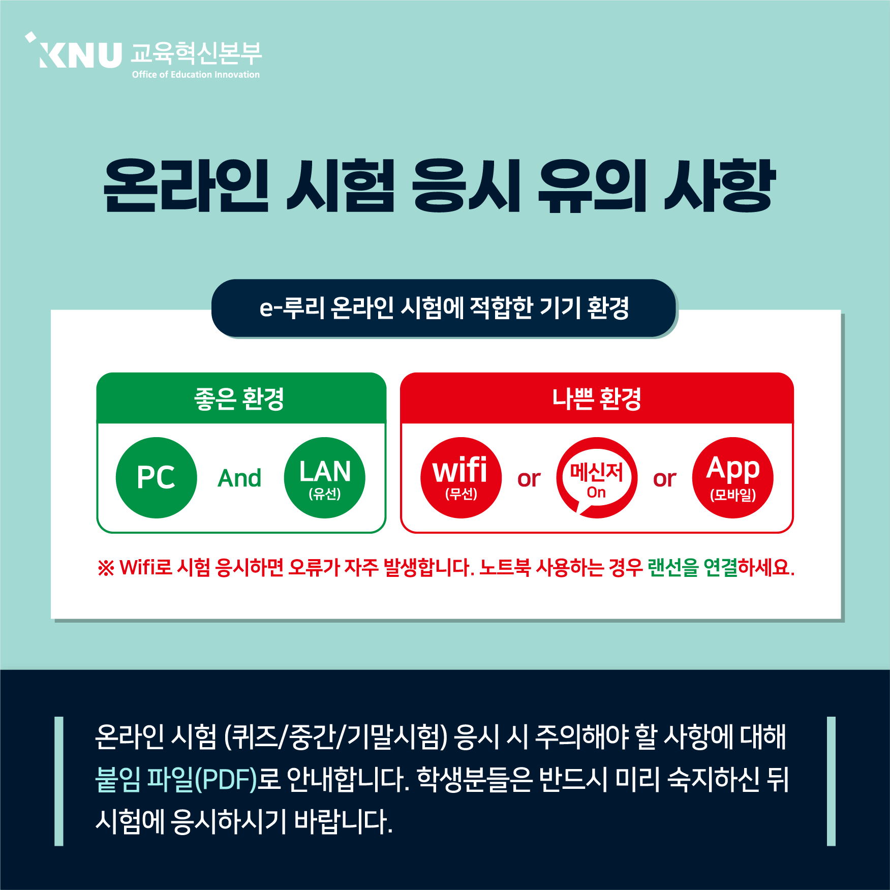 (학생용) 온라인시험(퀴즈/중간/기말시험) 응시시 주의사항