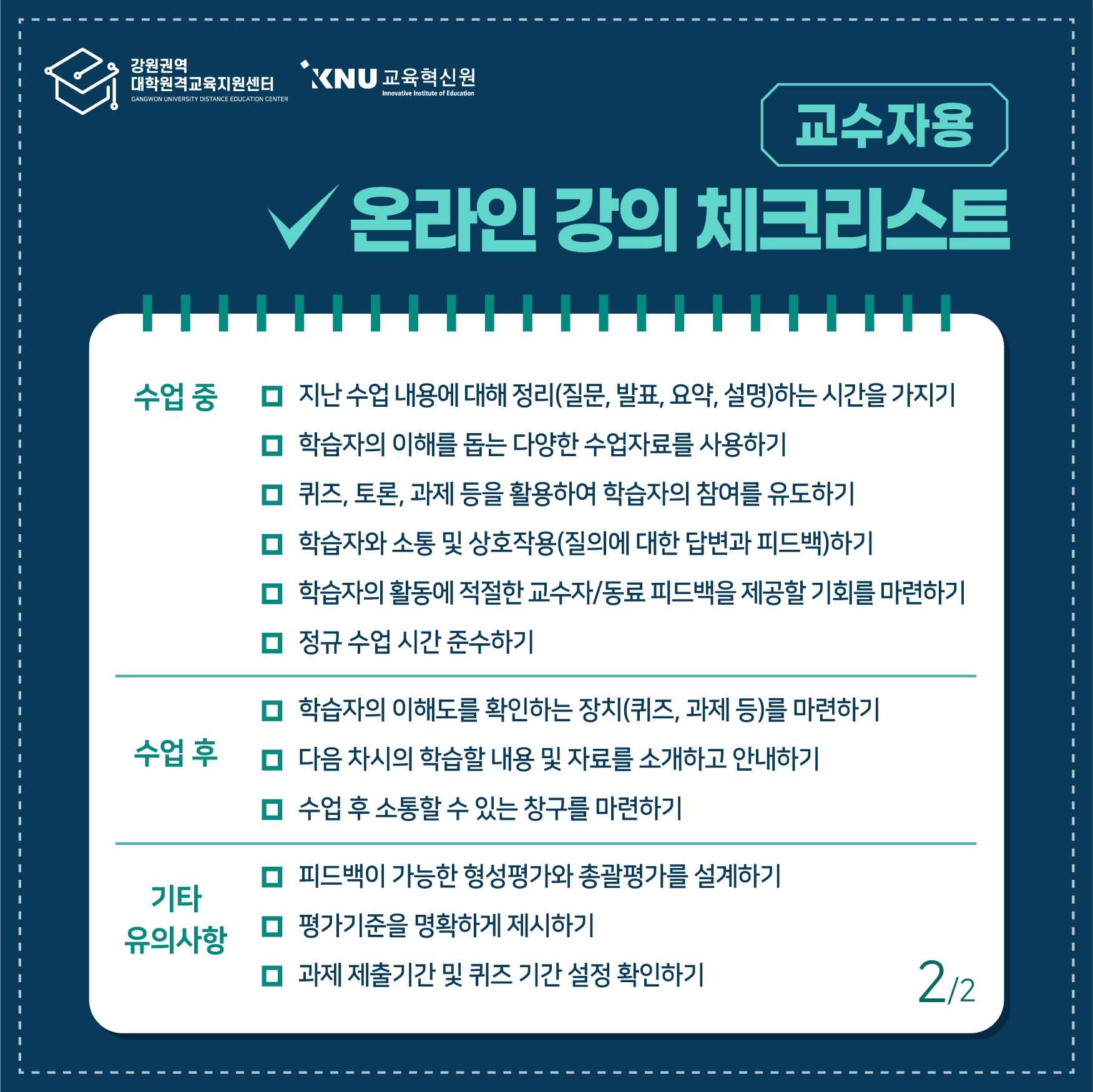 강원권역 대학원격교육지원센터에서 제작한 '온라인 강의 체크리스트'를 배포해 드리오니,