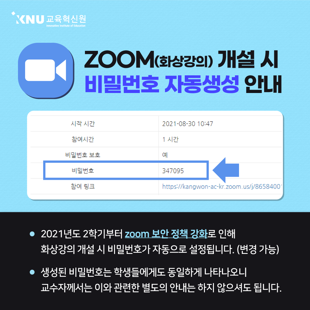 ZOOM(화상강의)개설 시 '비밀번호 자동생성' 안내