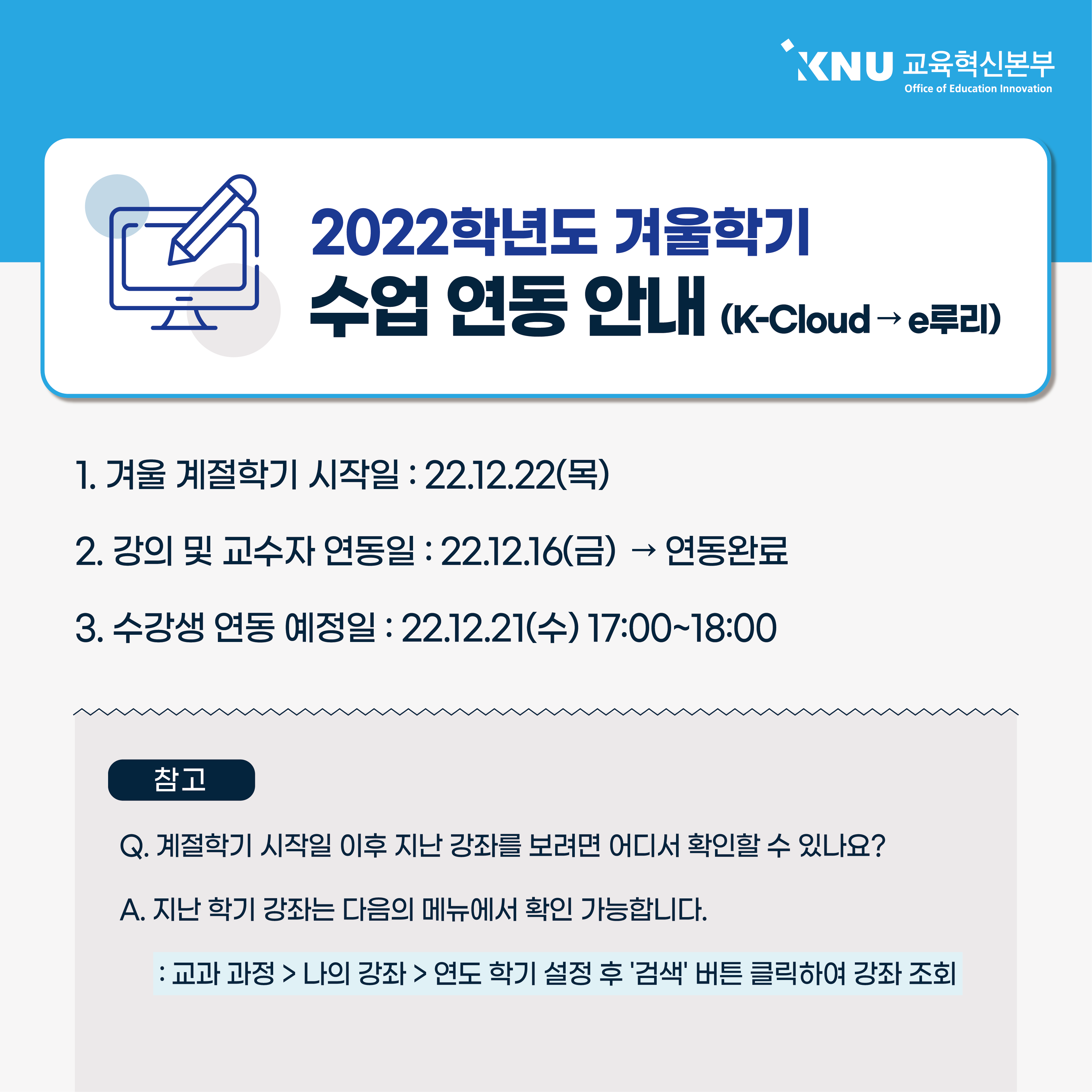 2022학년도 겨울학기 수업 연동 안내