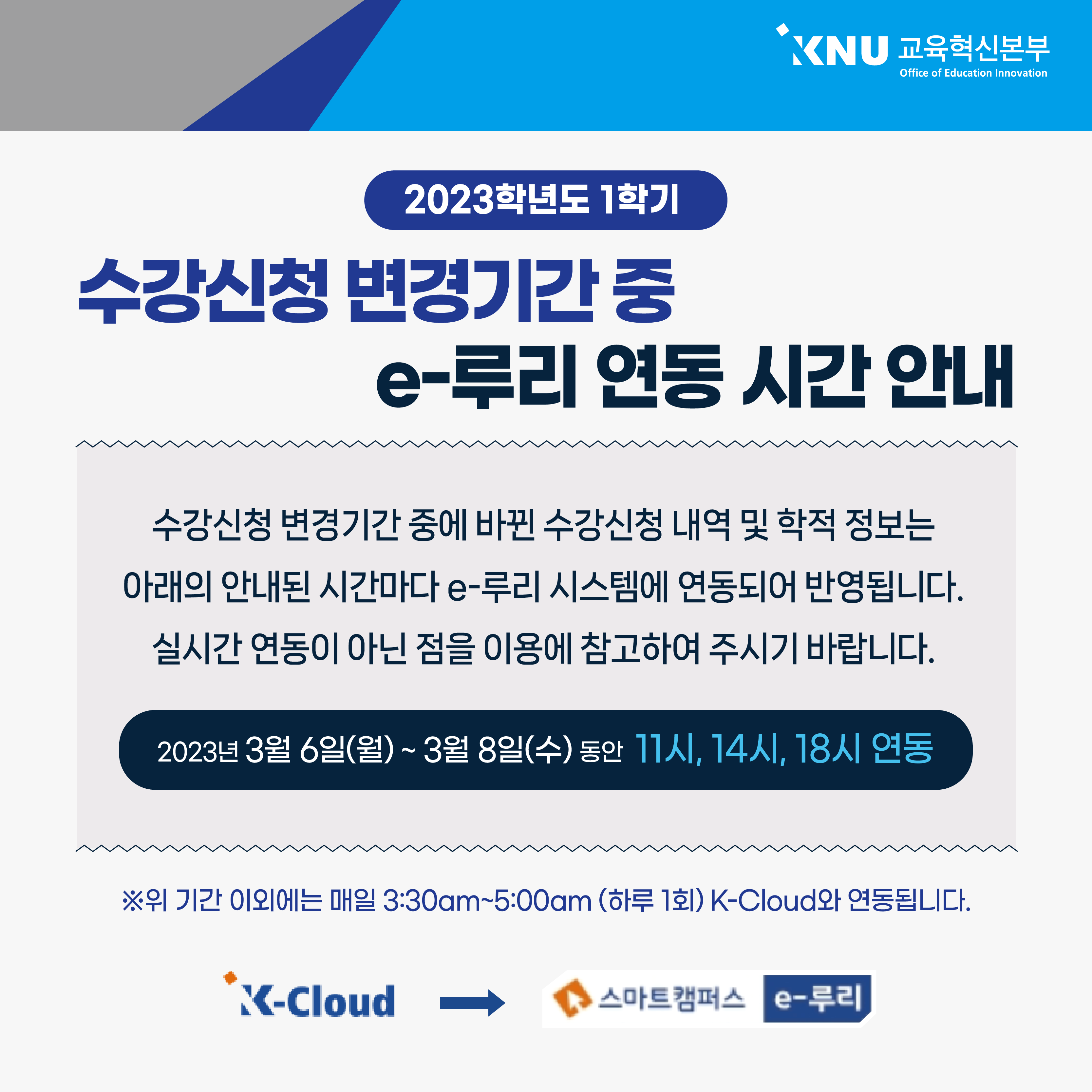 2023-1학기 수강신청 변경기간 중 연동시간 안내