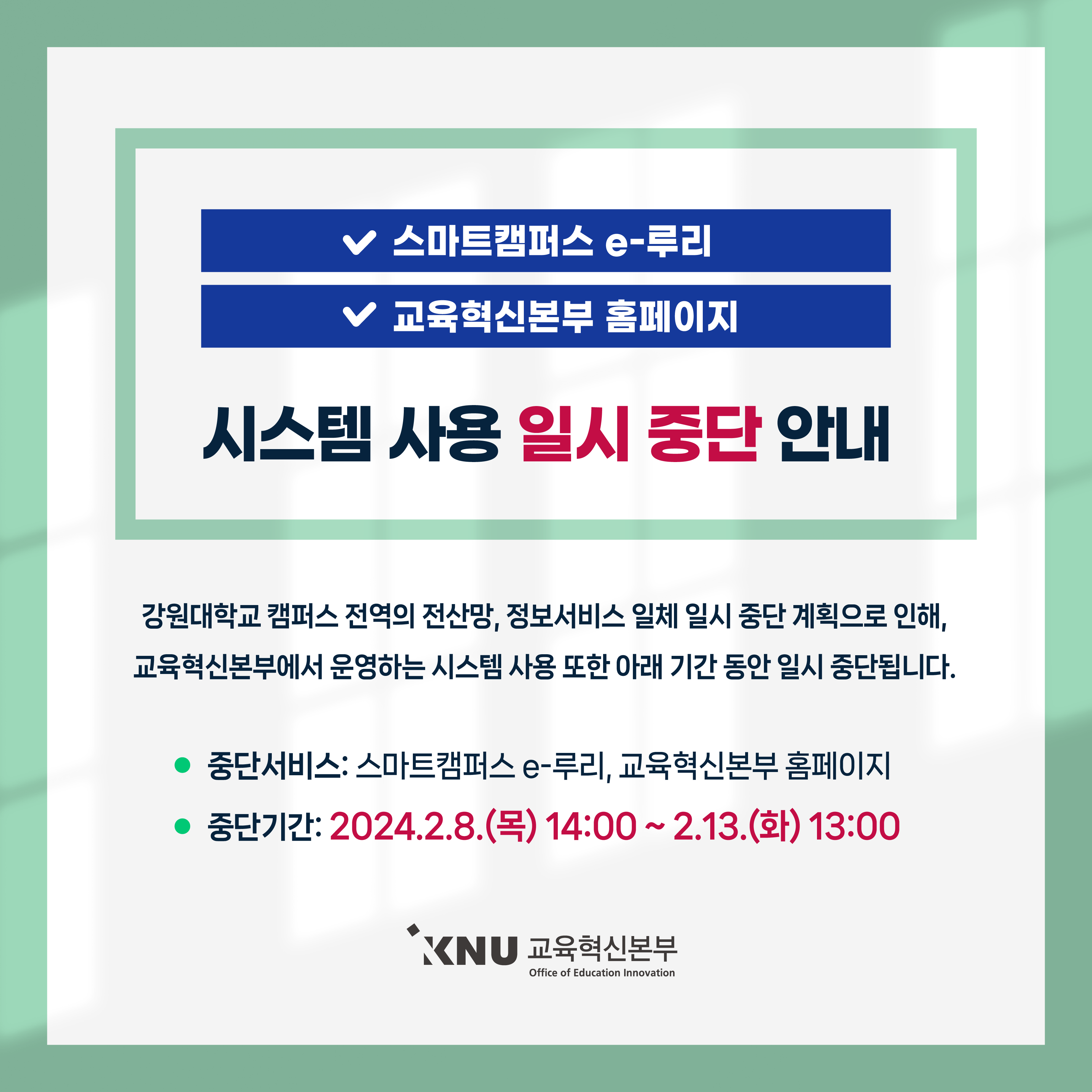 [중요] e-루리 시스템 사용 일시 중단 안내