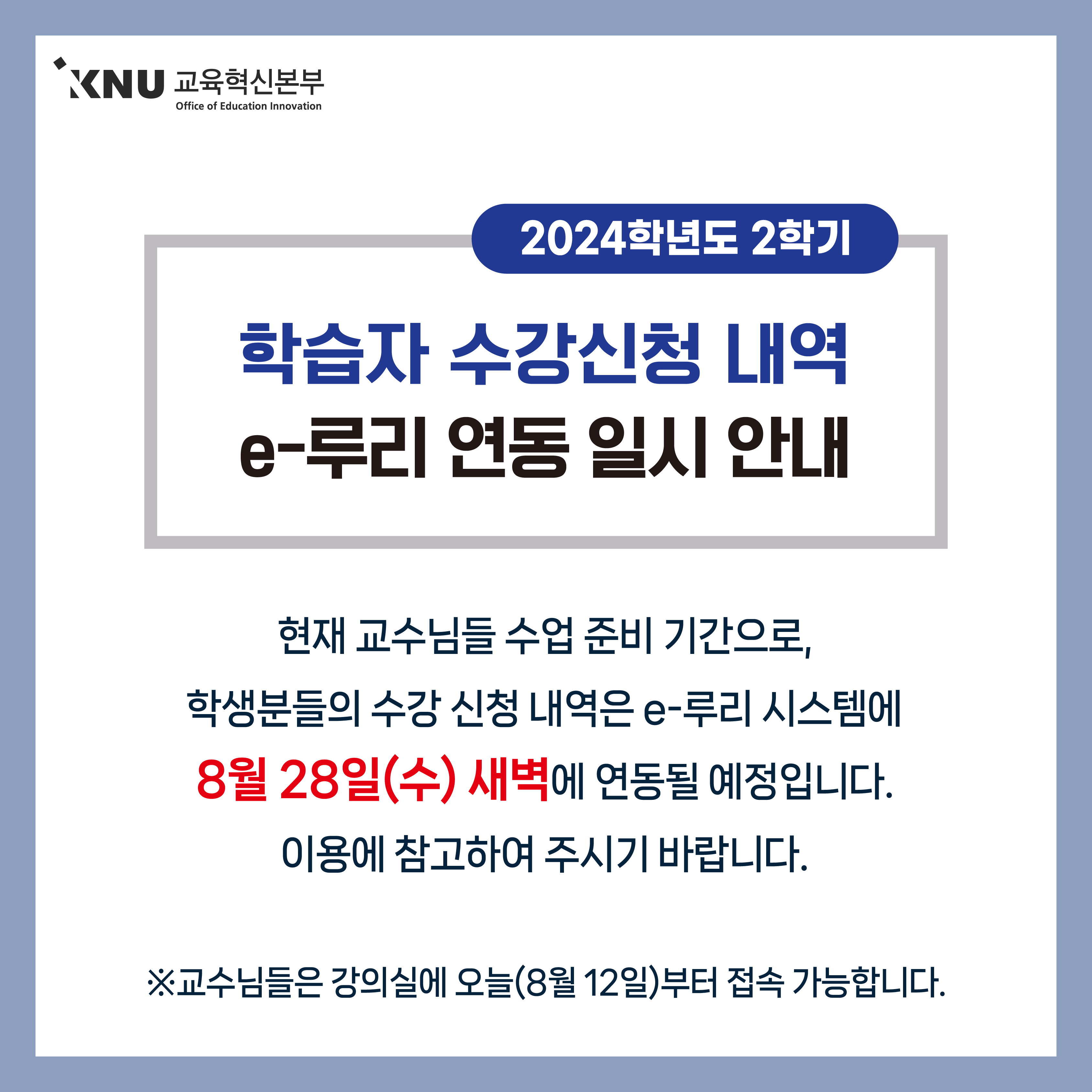 2024-2학기 수강신청 내역 e-루리 연동 일시 안내