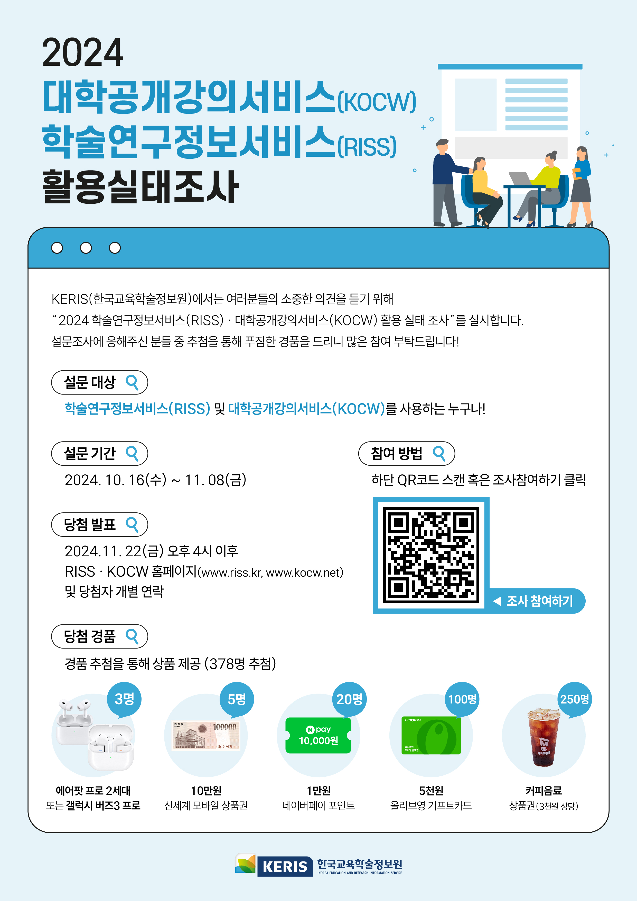 2024 대학공개강의서비스(KOCW)·학술연구정보서비스(RISS) 활용 실태 조사 참여 안내