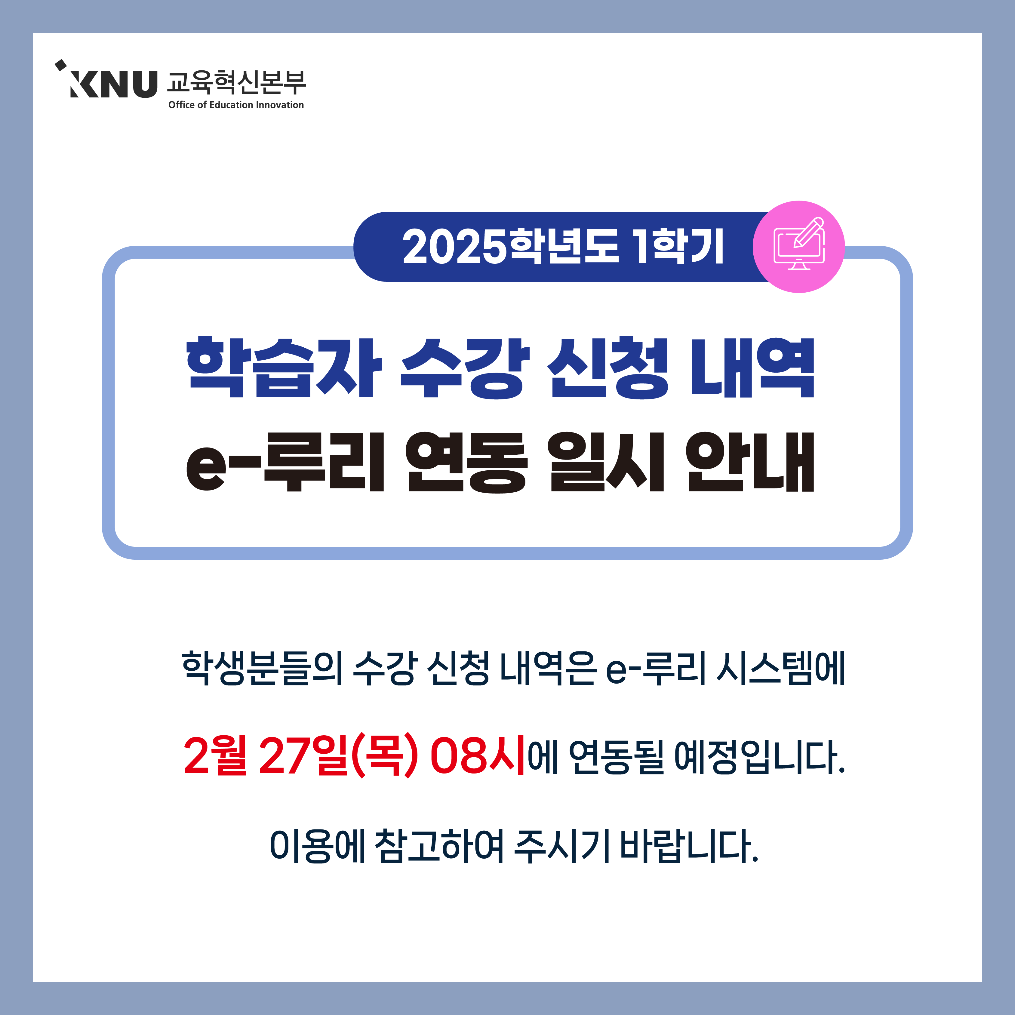2025학년도 1학기 수강 신청 내역 연동 일시 안내(연동완료)