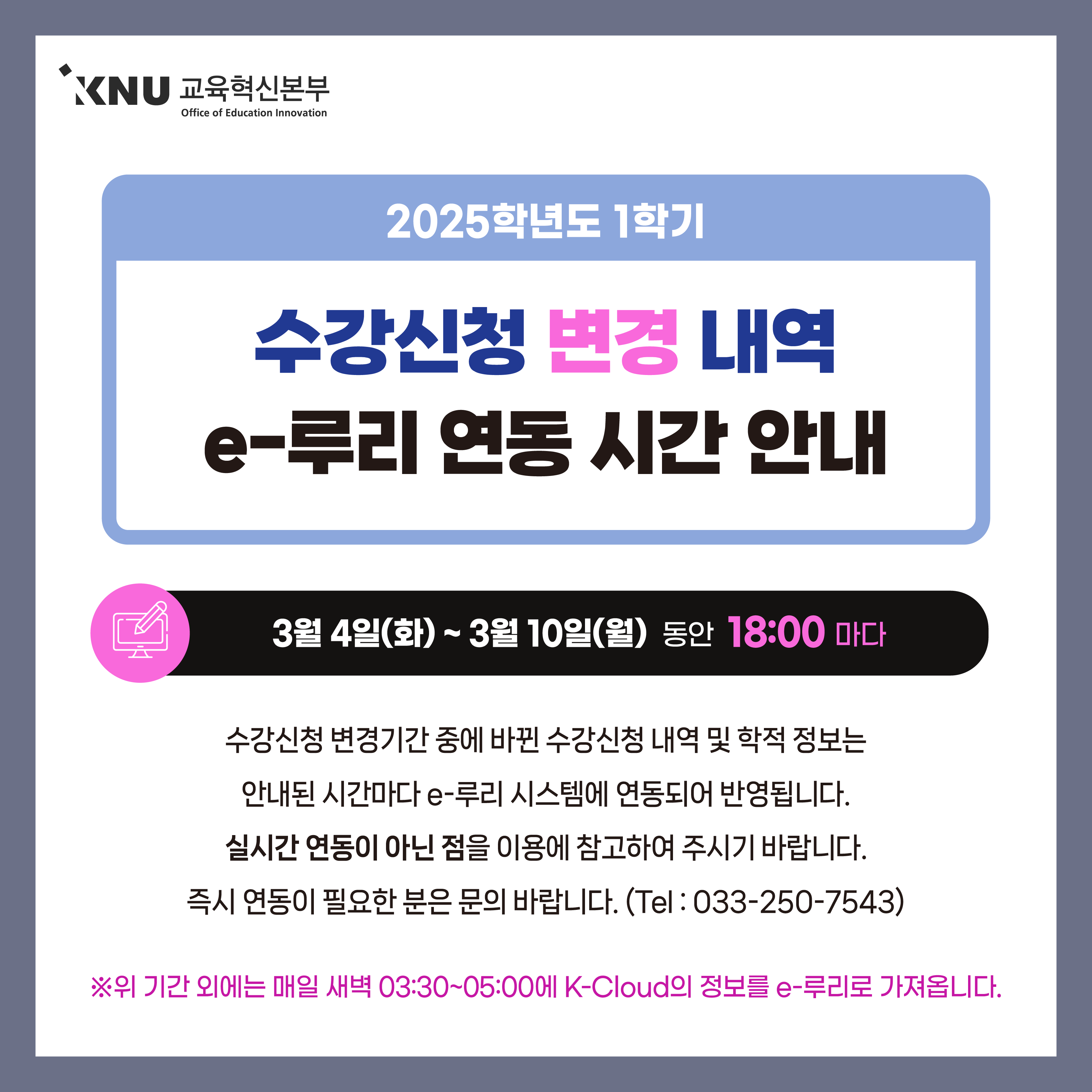 2025-1학기 수강신청 변경 내역 연동 시간 안내