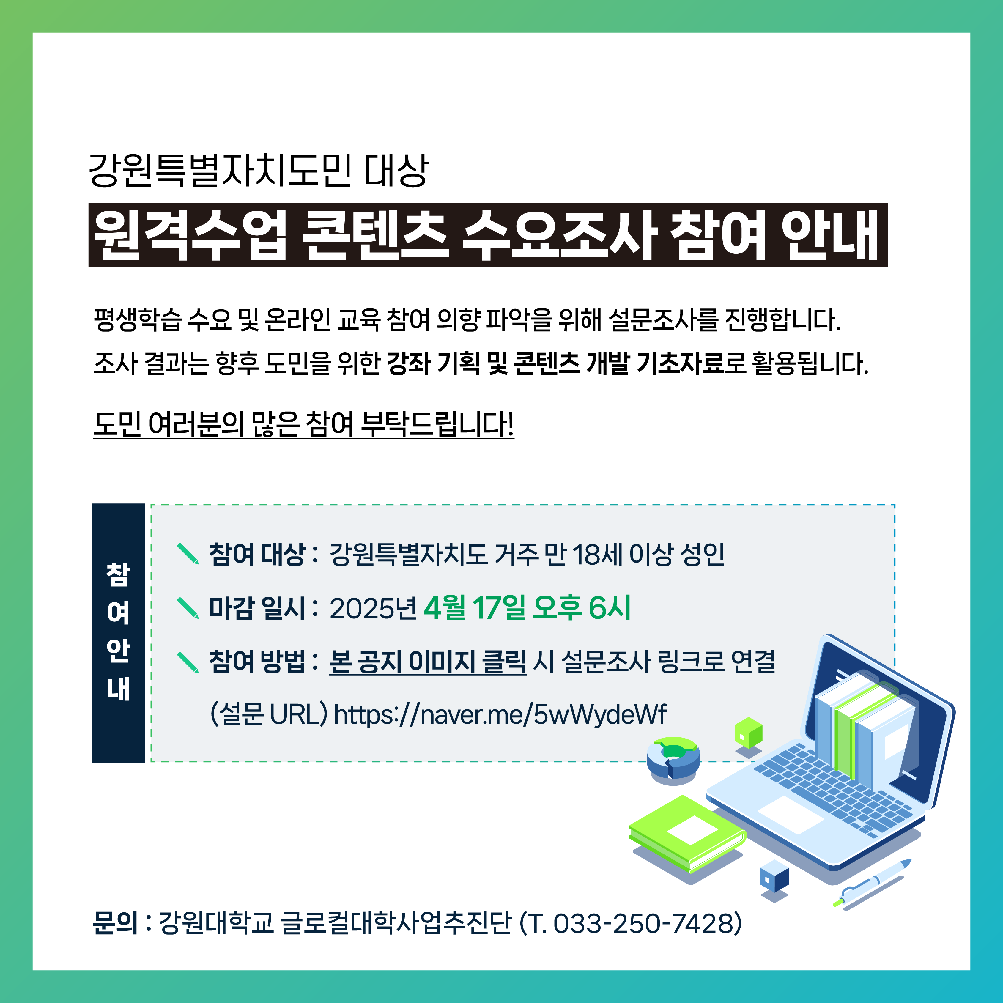 강원특별자치도민 대상 원격수업 콘텐츠 수요조사 참여 안내