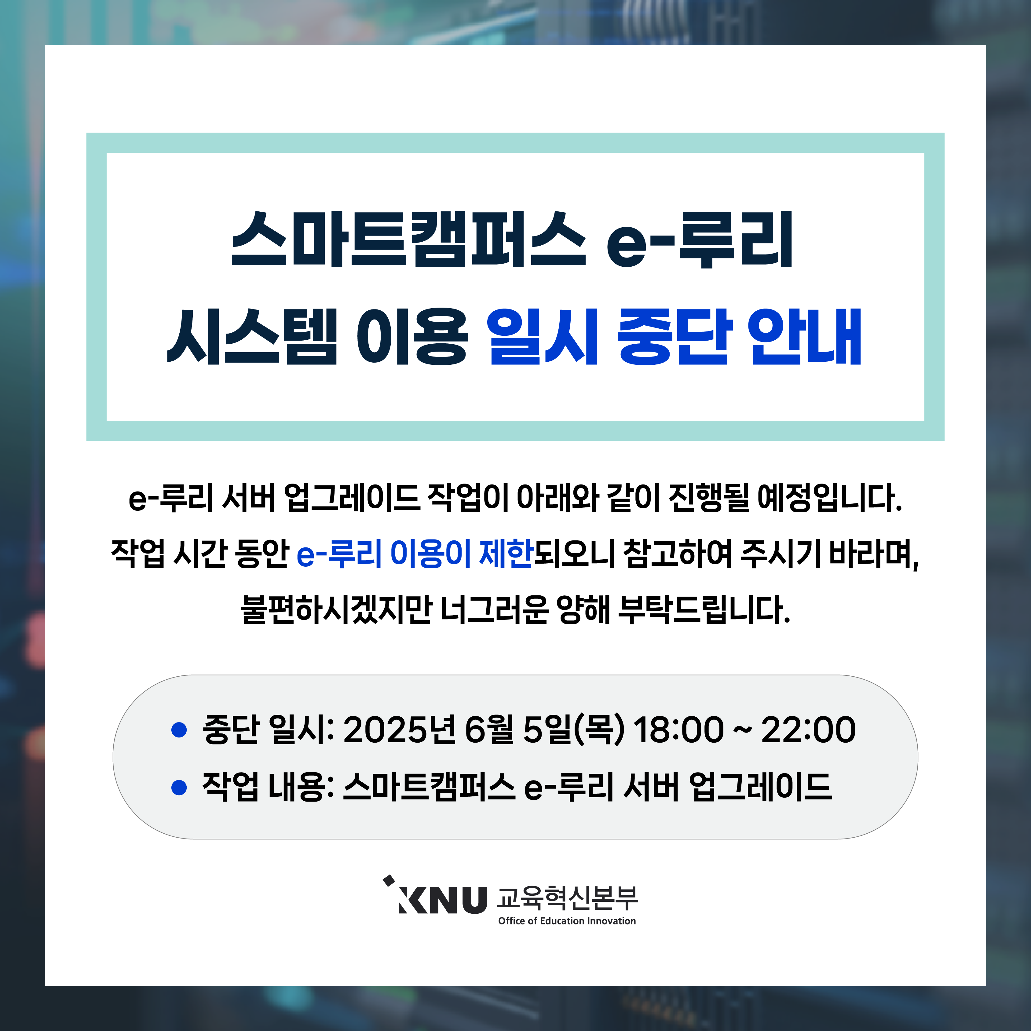 스마트캠퍼스 e-루리 시스템 이용 일시 중단 안내