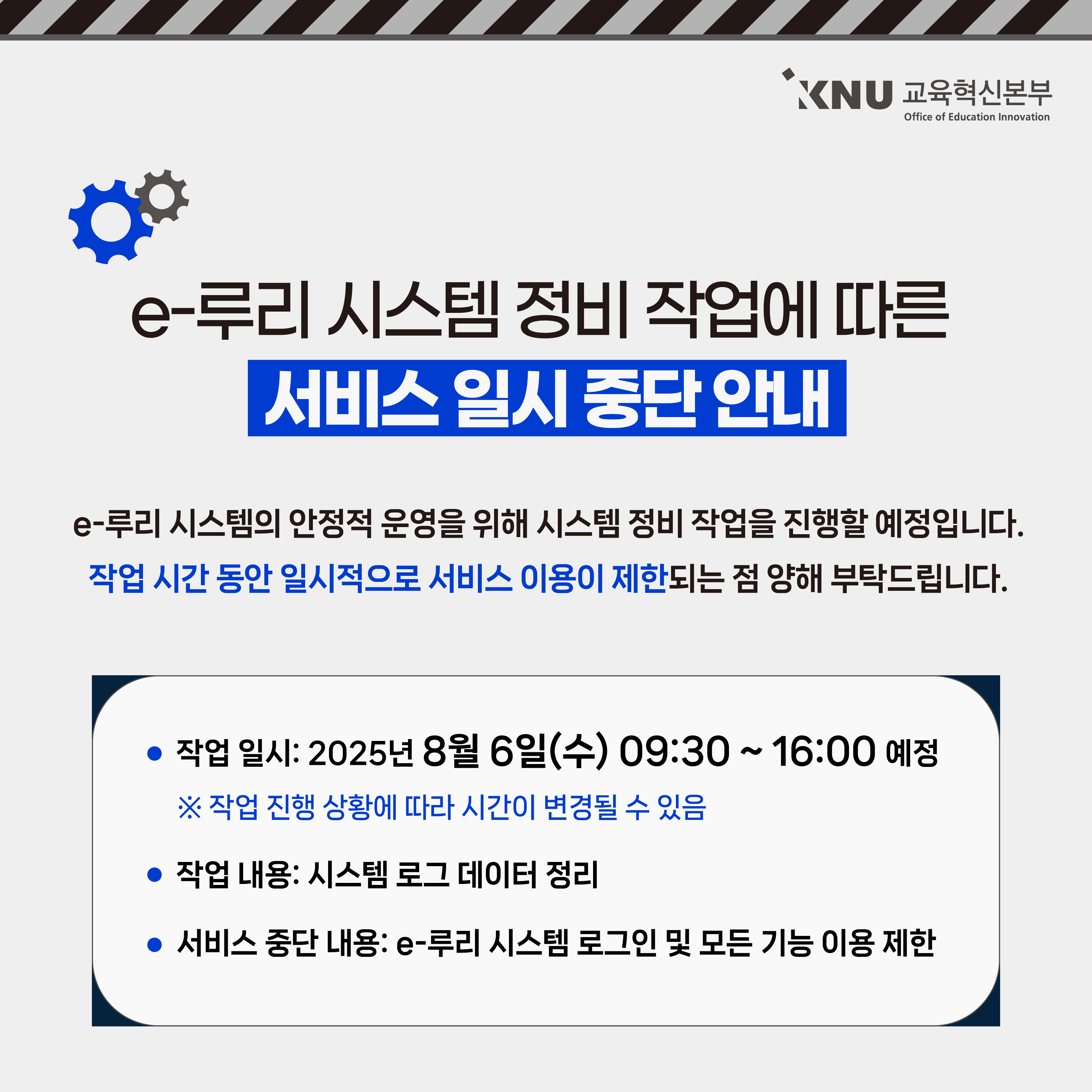 e-루리 시스템 정비 작업에 따른 서비스 일시 중단 안내