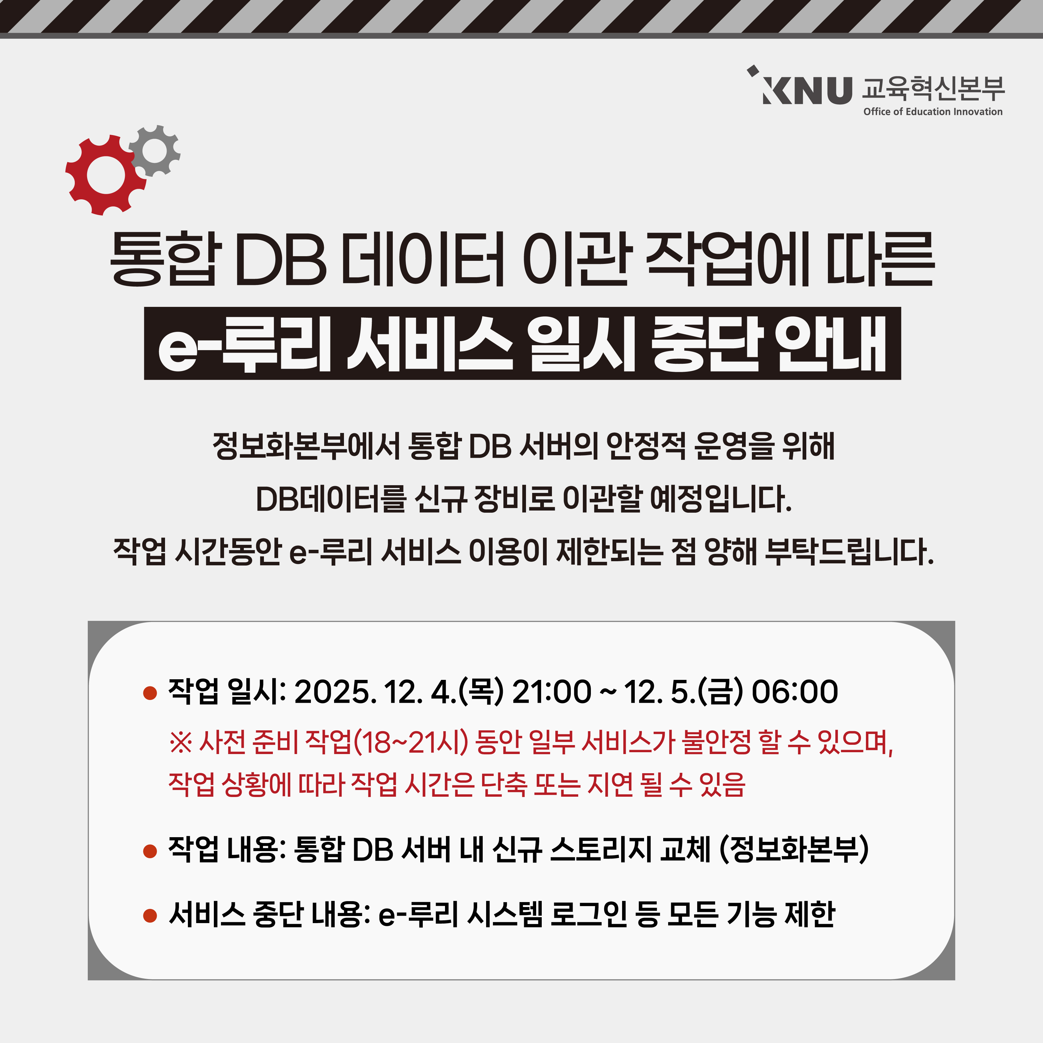 (종료) 통합 DB 데이터 이관 작업에 따른 e-루리 서비스 일시 중단 안내