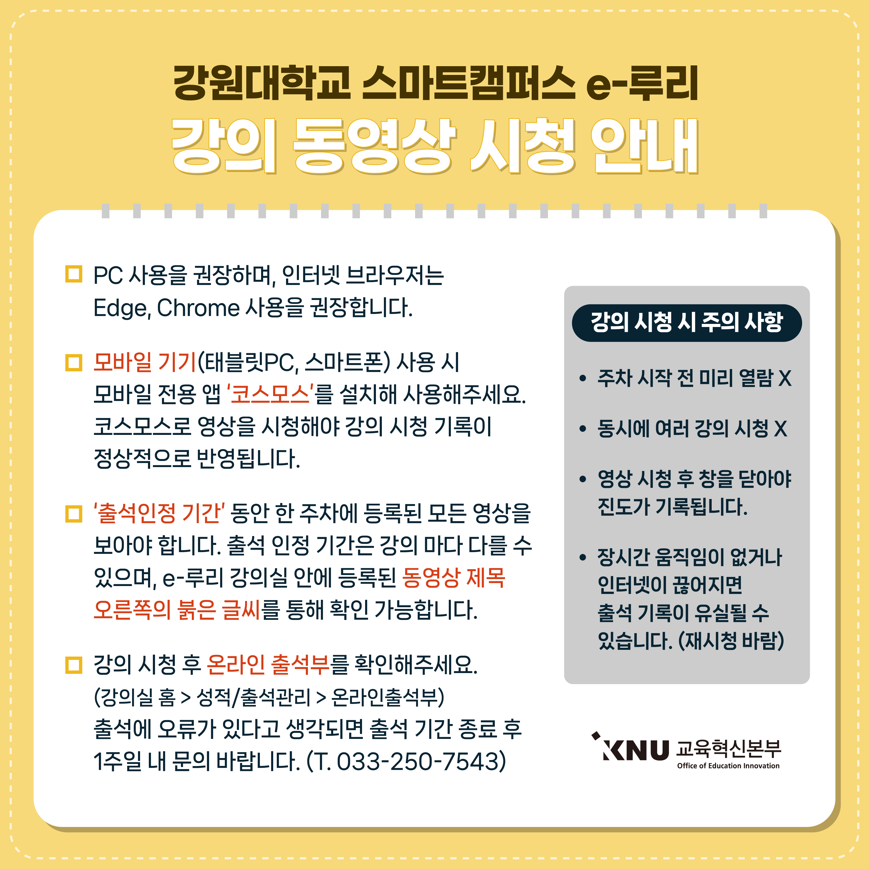 스마트캠퍼스 e-루리 강의 동영상 시청 안내
